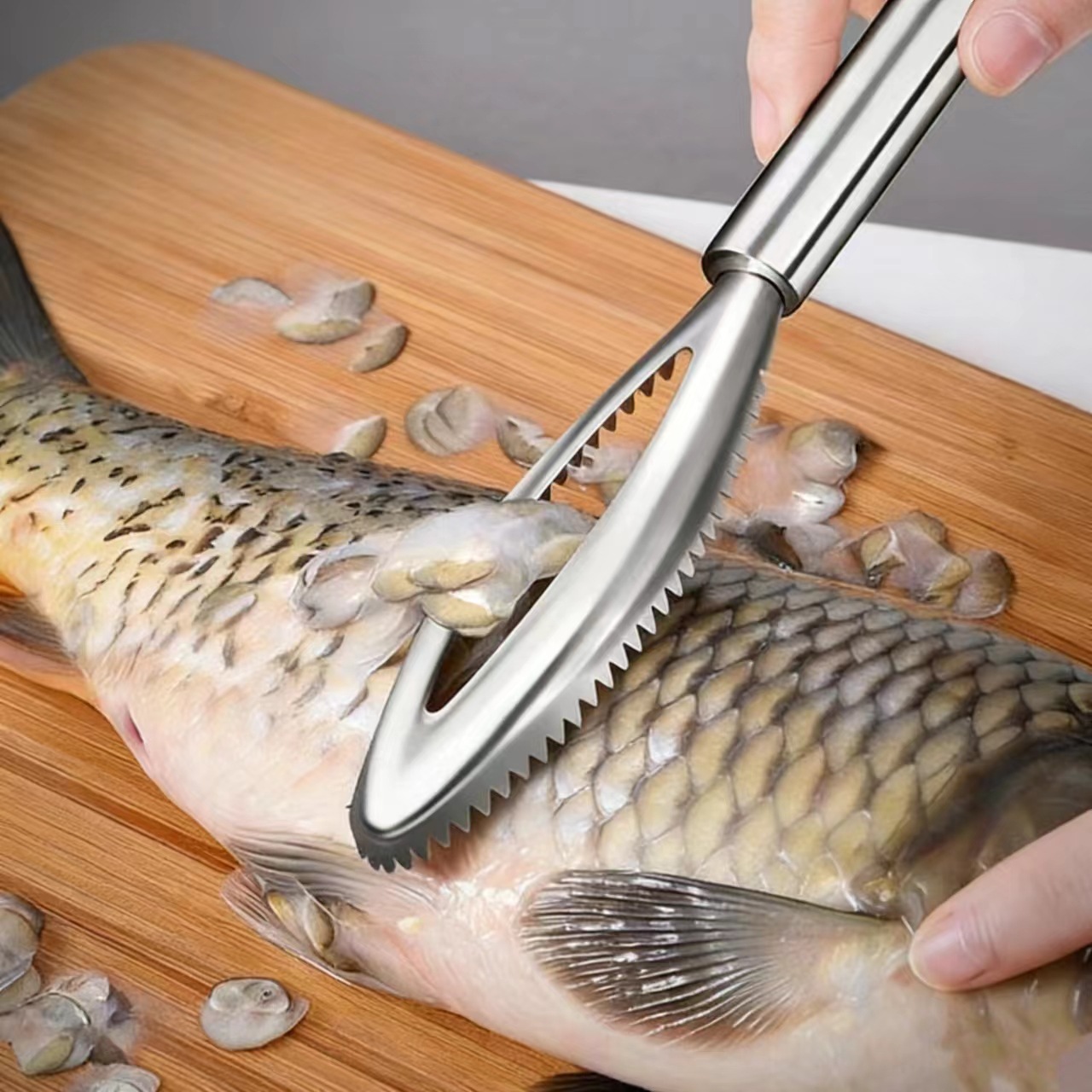 Designed to avoid damaging fish skin while scaling